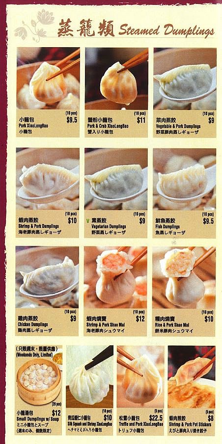 메인 요리라 할 수 있는 샤오롱바오 (Xiao Long Bao) 딤섬 메뉴 입니다.