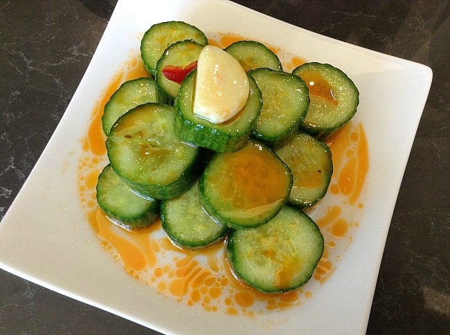 시작은 가벼운 오이샐러드부터... 다음에 등장할 메인메뉴 사오롱 바오를 준비하며 상콩한 오이샐러드로 혀를 긴장시킵니다.