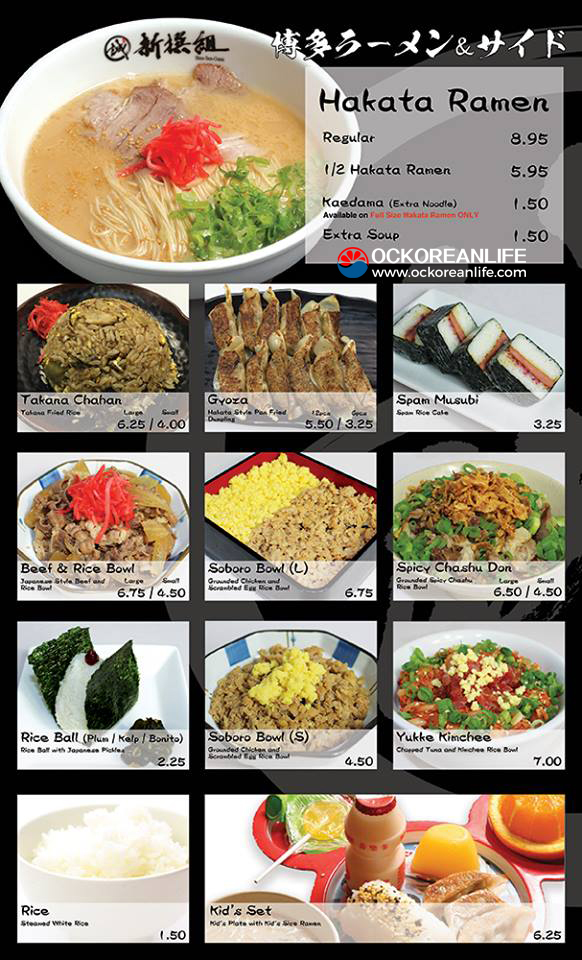 먼저 라멘 메뉴를 볼까요? 신센구미의 대표적인 메뉴 하카타 라멘이 큼지막히 자리잡고 있습니다.
