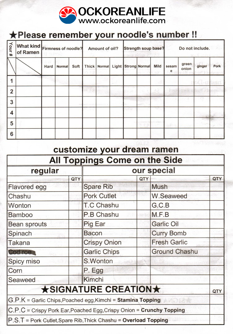 주문서입니다. 100% 취향저격 라멘이라는게 이 주문서를 두고하는 말입니다.
