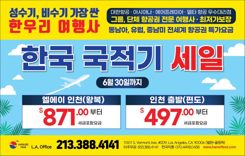즐거운 한국행 특가 여행 정보(213-388-4141)