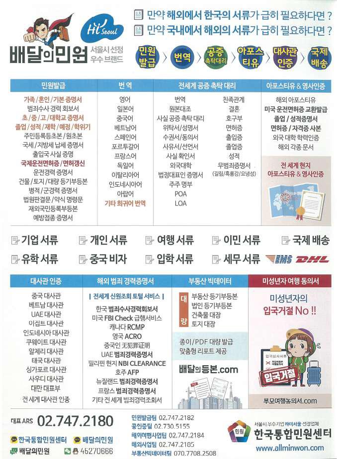 이 모든 과정을 직접 진행하실 시 정보가 부족하여 서류 준비가 어려우실 때가 종종 있습니다, 이럴 때 신속하고 정확하게 서류를 준비하실 수 있도록 한국통합민원센터에서 도와드리겠습니다!