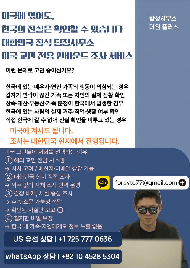 대한민국 내에서 합법적으로 사실을 확인하는 전문 조사 서비스입니다.