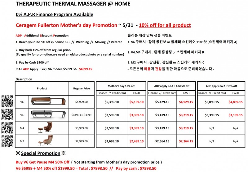 ※ CERAGEM FULLERTON 마더스데이 세일 & 그랜드 오프닝 선물이벤트 ※