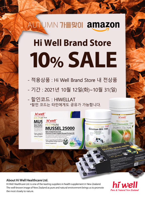 Amazon 내 Hi Well Brand Store 전상품 10% 할인을 준비하였습니다.