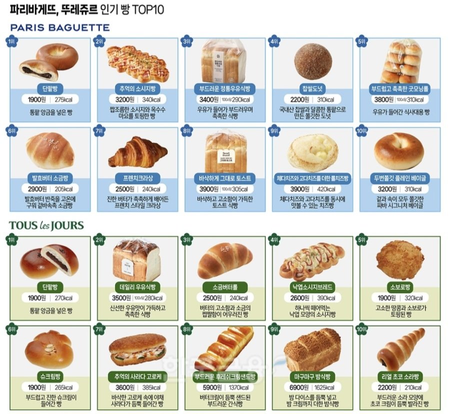 파리바게뜨 & 뚜레쥬르 인기빵 1위