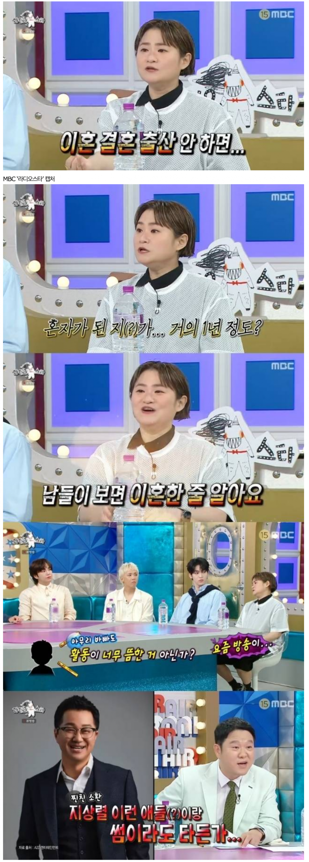 이날 김신영은 최근 홀로서기 중인 사실을 전했다. "혼자 된 지도 거의 1년 정도"라고. 너무 비장한 발언에 김구라는 "남들은 이혼한 줄 안다"며 이는 소속사 관련 얘기임을 대신 전했다.