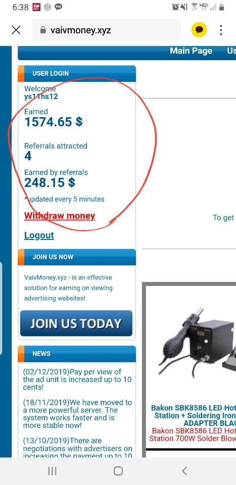 join us today (가입)~ register(등록)~start watching paid ad(광고보기)~ enter 3 number ($0.1쌓임)
