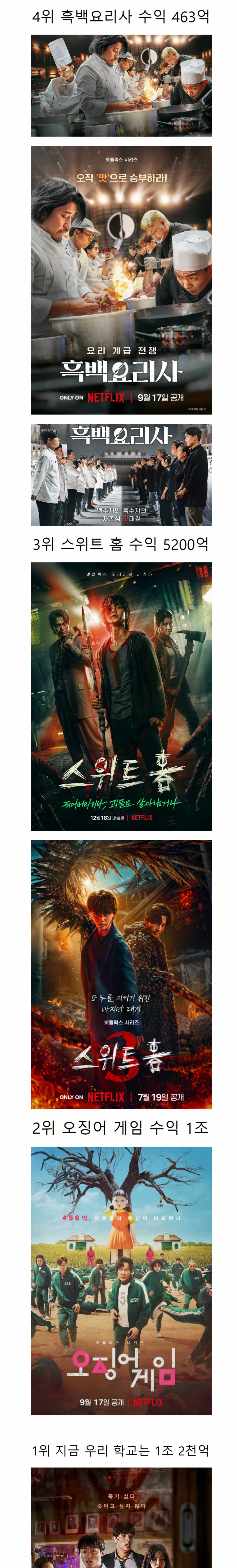 넷플릭스가 오징어 게임1보다 흑백 요리사에 투자를 2배넘게 한 이유 02.02 1068